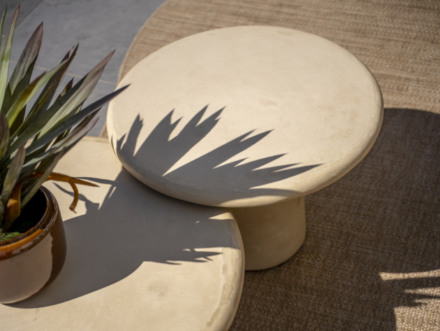 De bijpassende Hampton tafels zijn gemaakt van beton ciré en hebben een natuurlijke, warme betonlook. De set bestaat uit drie ronde tafel van 80, 60 en 45 cm, elk met een stabiele cilinderpoot in het midden. Samen vormen ze een stijlvolle en praktische toevoeging aan je loungeset. Perfect voor drankjes, hapjes of decoratie.