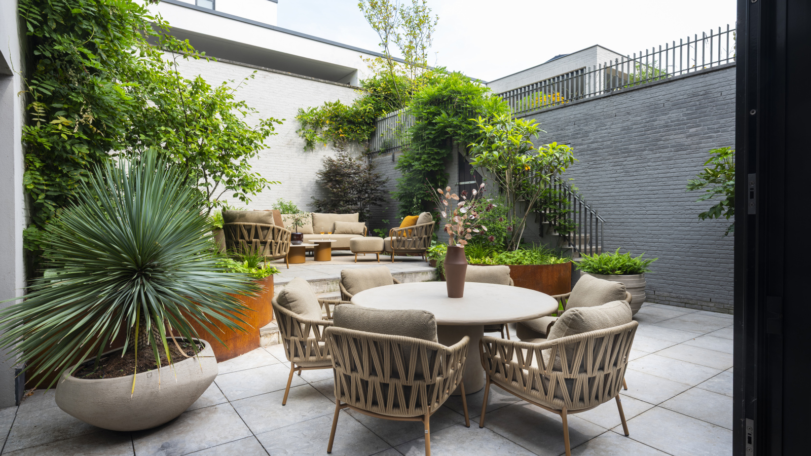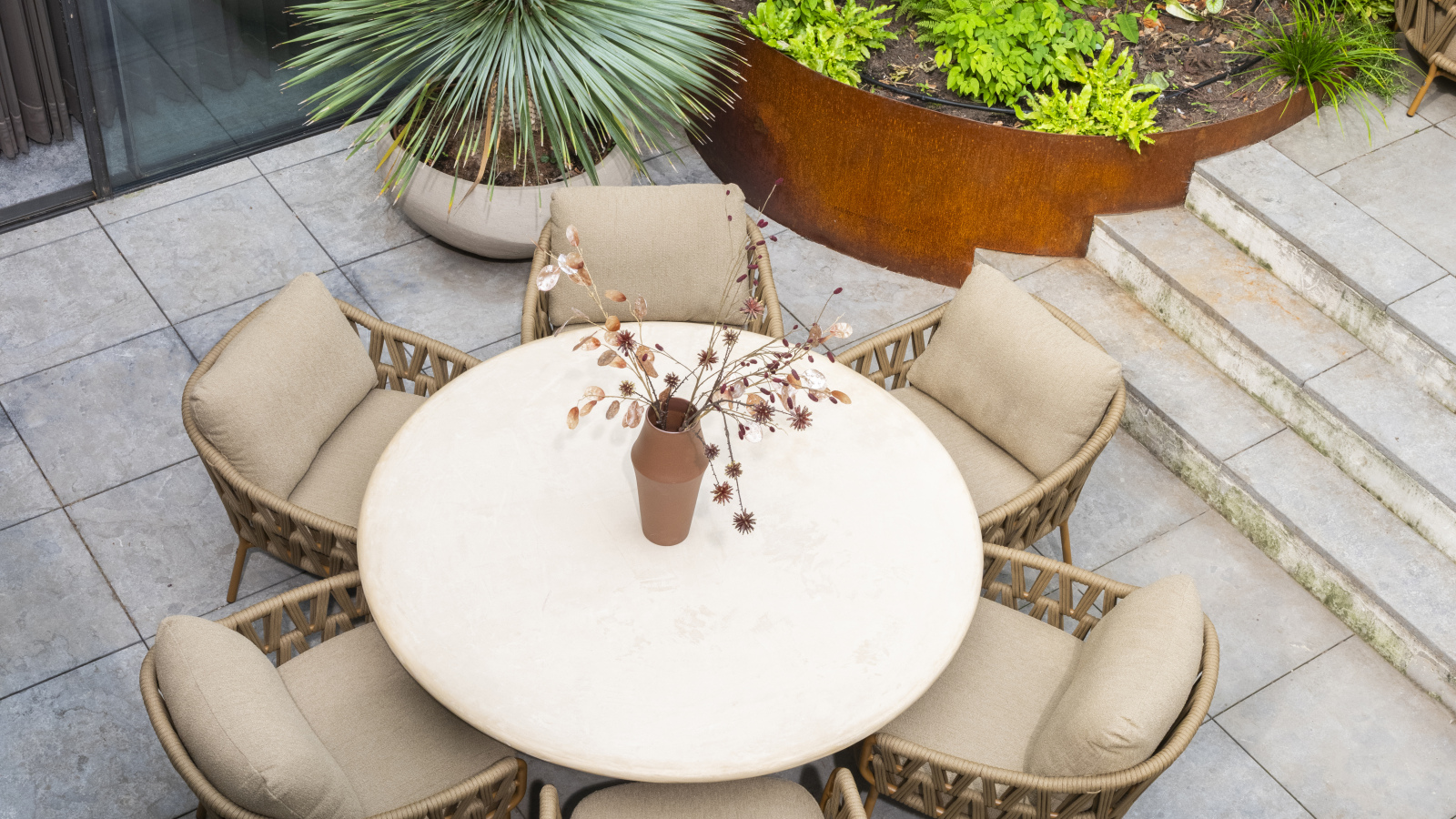Wil jij genieten van de lange zomeravonden op een luxe tuinset? Met de Biaritz low-diningset van 4 Seasons Outdoor creëer je een luxe buitenruimte waar comfort en gezelligheid centraal staat. Deze luxe set combineert moderne low-diningstoelen met een royale ronde tafel van 160 cm in beton ciré. Perfect voor een barbecue, uitgebreid diner of een borrel in de tuin met een luxe tuinset.