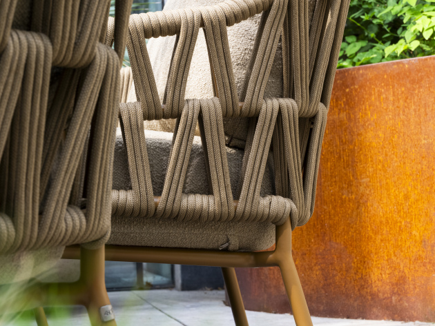 · Luxe low-diningstoelen met aluminium frame en rope vlechtwerk