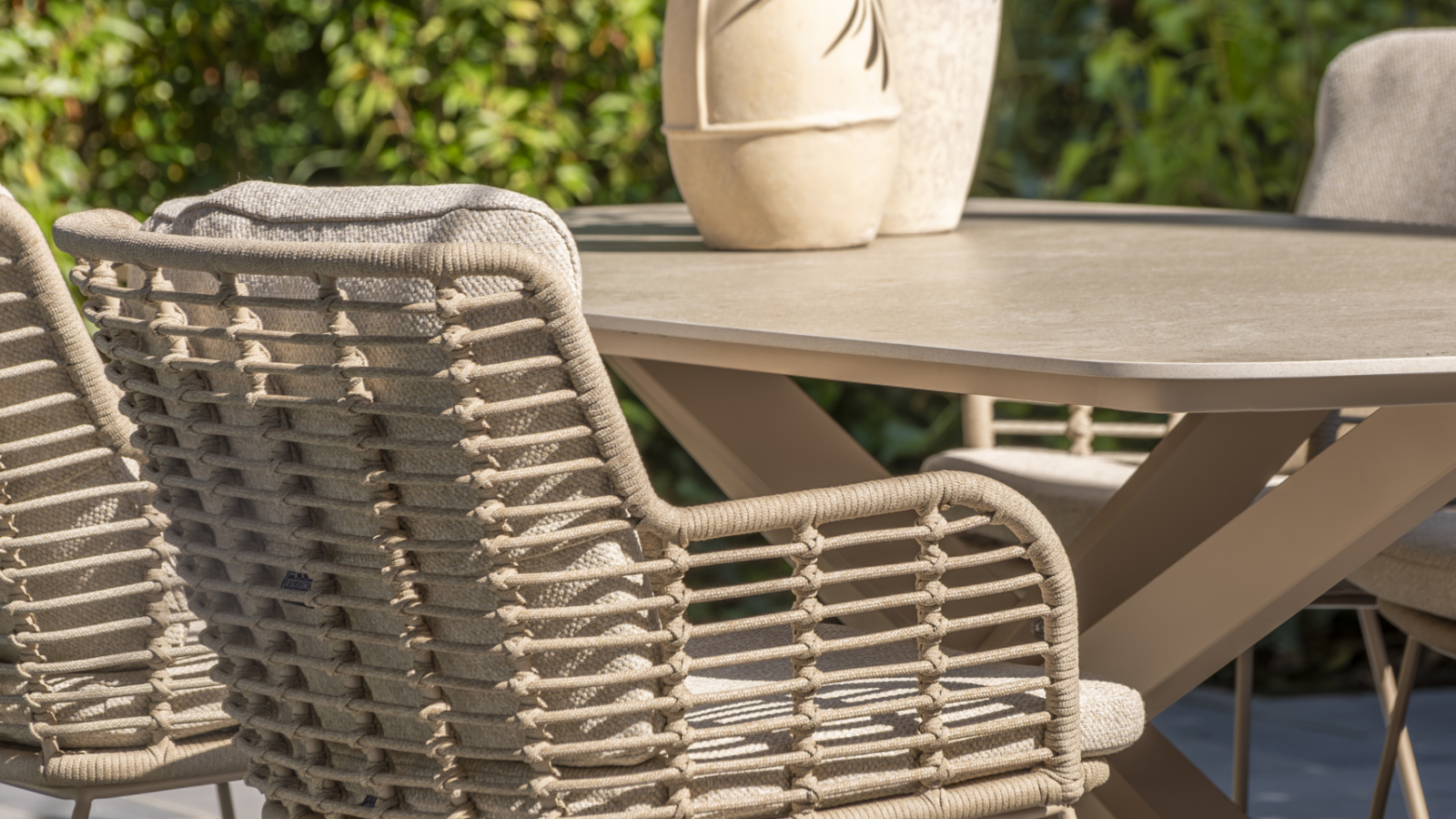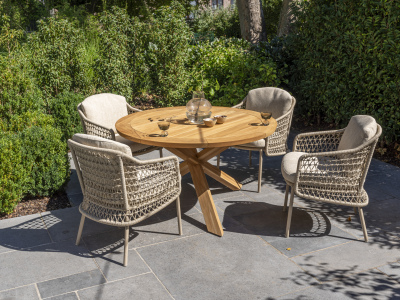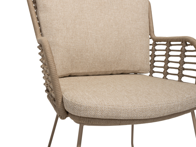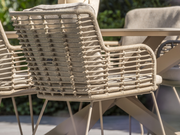 Warm en eigentijds design: met de fraaie kleur en het prachtig handgevlochten rope is deze set zeker een aanvulling op elk buitendecor.