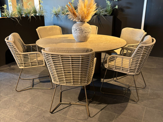 Fabrice dining met ronde Arizona tafel – luxe tuinset van 4 Seasons Outdoor