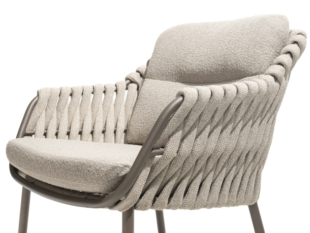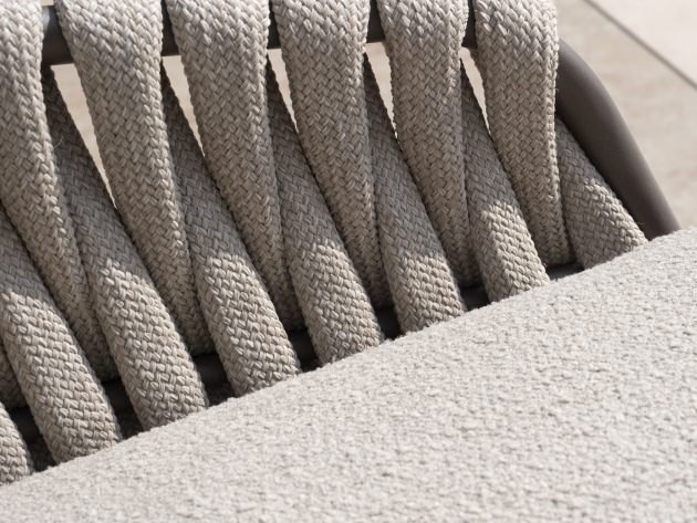 | Materialen | RVS, Rope, Bouclé-Olefin kussens, tafel keramiek en RVS |