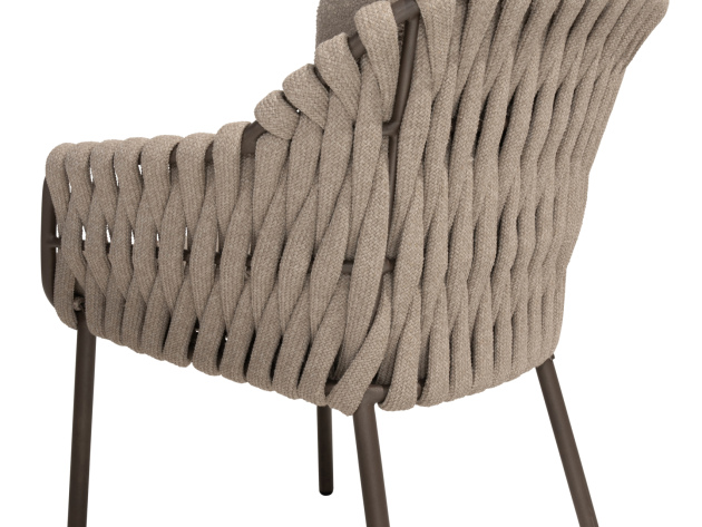 De Montera diningstoelen zijn voorzien van een sterk rvs-frame in de mooie Terre kleur. Het dikke rope vlechtwerk geeft de stoelen een moderne en robuuste uitstraling, terwijl de zachte all weather kussens met bouclé afwerking zorgen voor een ultiem zitcomfort. De hele tuinset is onderhoudsvriendelijk en weerbestendig, zodat je zorgeloos kunt genieten van jouw buitenmeubelen.